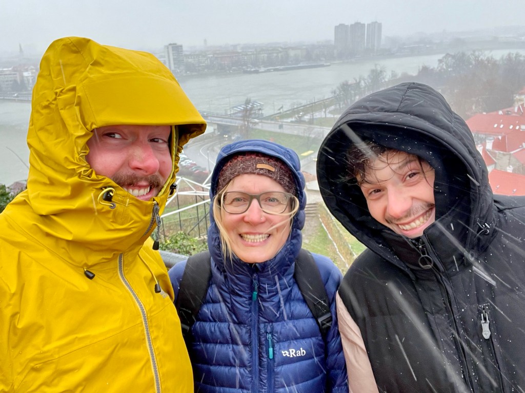 Diesen Freitag haben Sebastian und Jelena freigenommen. Wir besuchen Novi Sad, eine Stadt etwa eine Fahrstunde entfernt. Christian lenkt Sebastians Mini durch den anfangs recht unruhigen Verkehr in Belgrad bis auf die Burg in Novi Sad, ein spaßiges Fahrzeug. Das Wetter wechselt von Sonne auf Schneeregen, sodass wir uns auf der Burg nur für ein Foto aufhalten, um dann Richtung Innenstadt zu eilen, wir finden ein tolles Café und genießen hier fast den ganzen Tag 😀 Abends noch kurz Mexikanisch bestellt einen Film gestartet und der Tag endet gemütlich.