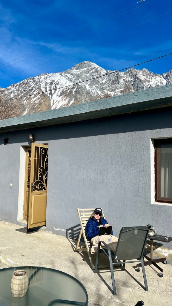 Kazbegi (oder Stepantsminda) ist von einer atemberaubenden Berglandschaft umgeben. Der höchste, mit 5047m, ist der Berg Kazbek. Die Berge des Kaukasus erheben sich schützend um den Ort. Nach einem kurzen Einkauf machen wir uns zurück zur Unterkunft, für heute steht noch etwas Arbeit auf dem Plan. Jana arbeitet die Reisewoche #7 aus, während Christian sich um Onepot Pasta kümmert. Nach dem Abendessen bringen wir den Beitrag zu Ende und lassen den Tag entspannt ausklingen.