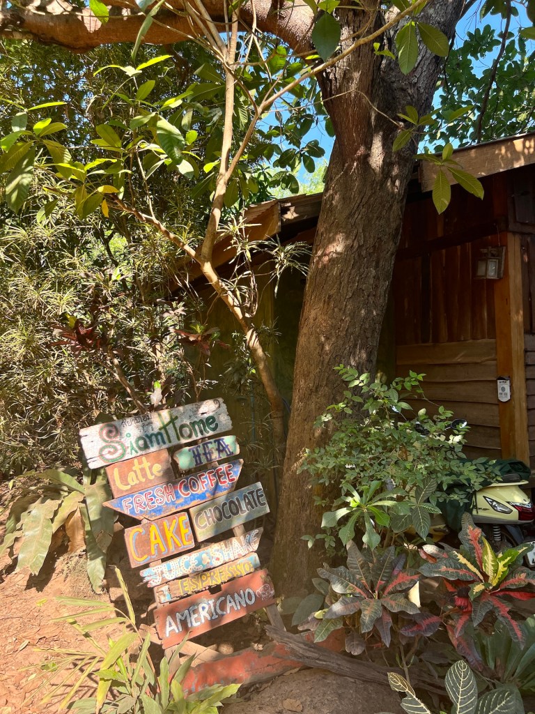 Bei einer Pause an einem View-Point genießen wir den Blick auf die Insel Koh Lek und gönnen uns einen leckeren Watermelonshake. Christian gelüstet es nach richtigem Kuchen. Den hatten wir schon lange nicht mehr. Kurz recherchiert finden wir ein unscheinbares Café in der Mitte der Insel. Es soll Karottenkuchen, Cheesecakes und Brownies geben. Was soll es, man gönnt sich ja sonst nichts. Naja oder doch. Seit dem wir in Thailand sind, geht unser hart angespartes Geld nur so flöten. Wir können gar nicht so schnell mitschreiben, wie wir ausgeben. Wir hatten zwar gelesen, dass Thailand teurer geworden ist, aber so krass? Theoretisch ist es nach genauer Überlegung doch einfach erklärt: Wir leben hier intensiver! Alles ist recht günstig und so achtet man nicht so genau aufs Geld und dazu gönnen wir uns. Hier Essen gehen, da nen Shake, hier ne Massage, ein guter Roller und so kommt einiges zusammen. Dazu die Atmosphäre, die immer wieder zum Hinsetzen einlädt. Ein Phänomen, von dem wir durch andere Reisende bereits gehört haben.