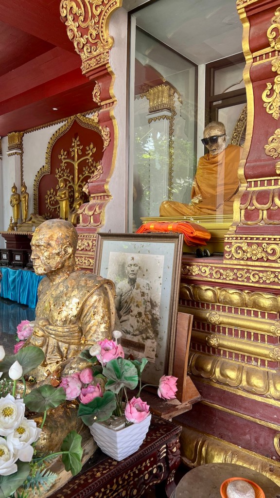 Neuer Tag, neuer Schwung. Die beiden Tage taten gut. Schon morgens sind wir voller Tatendrang. Wir haben uns ein paar Highlights rausgesucht und ziehen nach einem leckeren Frühstück los. Der erste Stopp ist Wat Kunaram. Hier wird ein mumifizierter Mönch ausgestellt, zur Erinnerung an die Lehren Buddhas. Zudem befindet sich auf dem Gelände eine Schule. Wir inspizieren den Ort und finden am Ende noch das I Love Elephant Samui Projekt. Ein netter Herr erklärt uns, wie es zu dem Projekt kam und dass die Elefanten auf Samui alle domestiziert sind. Es gibt keine wilden Elefanten hier. Die einzige Elefanten Tierärztin der Insel möchte die Elefanten, die neu geboren werden wild aufwachsen lassen, ohne Menschenkontakt, um die nachfolgenden Generationen auswildern zu können. Er gibt uns ein Geschenk aus Elefantenkacke und einen Flyer mit. Wir denken auf jeden Fall darüber nach uns das Projekt näher anzusehen.