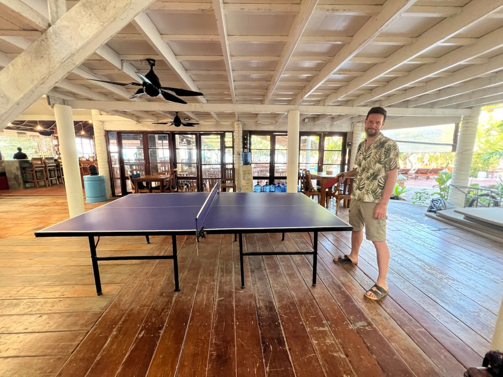 Vor dem Abendessen mit Andrea und Tobias gehen wir noch in das anliegende Beach Resort. Hier haben wir eine Tischtennisplatte gefunden. Die Platte ist frei und wir dürfen kostenlos daran spielen. Eine Stunde schenken wir uns nichts. Es ist erschöpfend, doch der Ehrgeiz treibt uns an. Endlich hat es sich gelohnt, dass wir unsere Schläger um die halbe Welt tragen.
