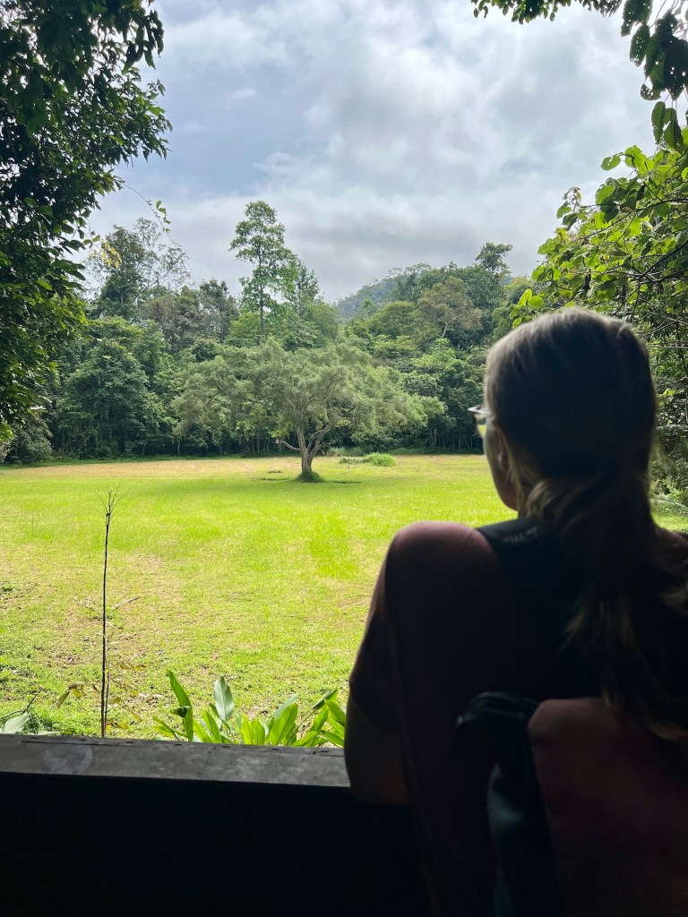 Das Frühstück am nächsten Morgen schmeckt gut und gibt Energie für unsere heutige Planung. Wir wollen den Nationalpark erkunden. Die Vorbereitung dafür: lange Hose, lange Socken, knöchelhohe Wanderstiefel, eine Menge Trinkwasser und Regenjacken im Rucksack. Auch wenn wir noch nicht wissen was uns erwartet, wir wissen von den Giftschlagen, Blutegeln, Moskitos und dem wechselhaften Wetter. Da gehen wir auf Nummer Sicher. Am Fluss angekommen werden wir für 20 Cent pro Person zum anderen Ufer gebracht. Neben einem 3 Sterne Resort befindet sich hier auch das Headquarter des Parks an dem wir unseren Besuch und die Tour anmelden müssen. Außerdem zahlen wir einen Euro für jede Kamera die wir dabei haben. In unserem Fall zwei Smartphones. Die Parkwächter teilen uns mit, dass ein Teil unserer Tour, der Canopy-Walkway, nicht möglich ist, weil der Weg wegen Regenfällen gesperrt sei. Zum Gipfel des Terisek können wir aber gehen. Gut.