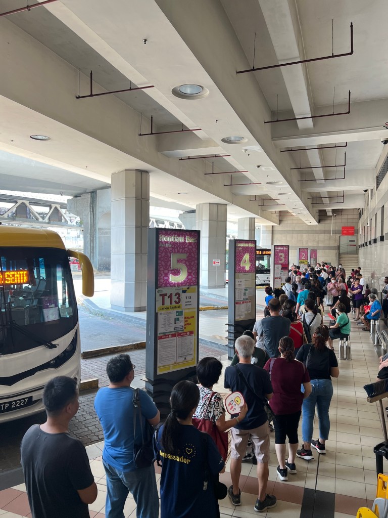 Der Donnerstag startet mit einer Blitzidee. Nach dem Frühstück rufen wir uns ein Grab und lassen uns zum Busbahnhof bringen. Morgen geht es weiter nach Johor und da wir auf dem Hinweg die Erfahrung gemacht haben, dass die Busse schnell mal ausgebucht sein können, kaufen wir die Tickets dieses Mal einen Tag vorher. Für knapp 12 EUR sind wir jetzt stolze Besitzer der Tickets. Wir rufen uns ein Grab und nutzen die Wartezeit um eine Waffel am Busbahnhof zu kaufen. Das Taxi kommt leider schneller als geplant. Jana würde sagen, die Waffelfrau hat länger gebraucht als sie musste 😋 Jedenfalls ist der Fahrer bereits da noch bevor die Waffel durchgebacken ist und so lassen wir die Waffeln auf der Fahrt kalt werden. Etwa 14 Minuten lang kriecht uns der Geruch von frisch gebackener Waffel in die Nase. Auch auf Nachfrage, Essen im Taxi ist nicht drin. Wir lassen uns an einer Mall rauswerfen, verschlingen die Waffel und erledigen unsere Einkäufe. Zurück in der Unterkunft heißt es erst einmal packen. Der Bus fährt morgen bereits um 10Uhr und das ist aktuell echt nicht unsere Zeit 😉 Zum Abschied landen wir abends noch einmal in unserer Nudelbude, wo wir rekordverdächtig wieder die selben Gerichte bestellen wie die letzten drei Male. Wer jetzt denkt „Langweilig“, hat das Essen noch nicht probiert. 😜
