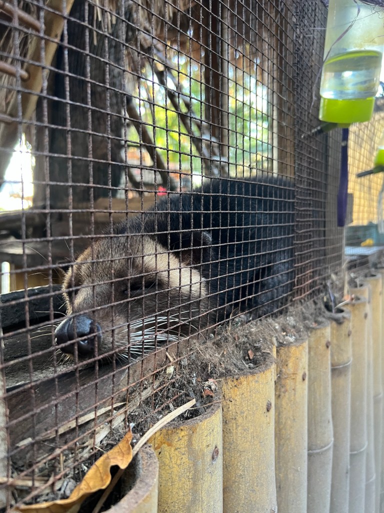 Wir latschen etwa eine halbe Stunde und erreichen erleichtert das Lutwala Resort. Wir sind zwar etwas früh für den Check-In, aber unser Zimmer, der Clownfish, ist bereits bezugsbereit. Wir werden von einer Ziege, zwei Papageien und zwei Luwaks begrüßt. Das Zimmer ist kompakt und etwas heruntergekommen, hat aber alles was wir benötigen. Ein kleiner Kühlschrank, ein bequemes Bett und Badezimmer. Perfekt. Wir sortieren uns und holen dann etwas Schlaf nach😄