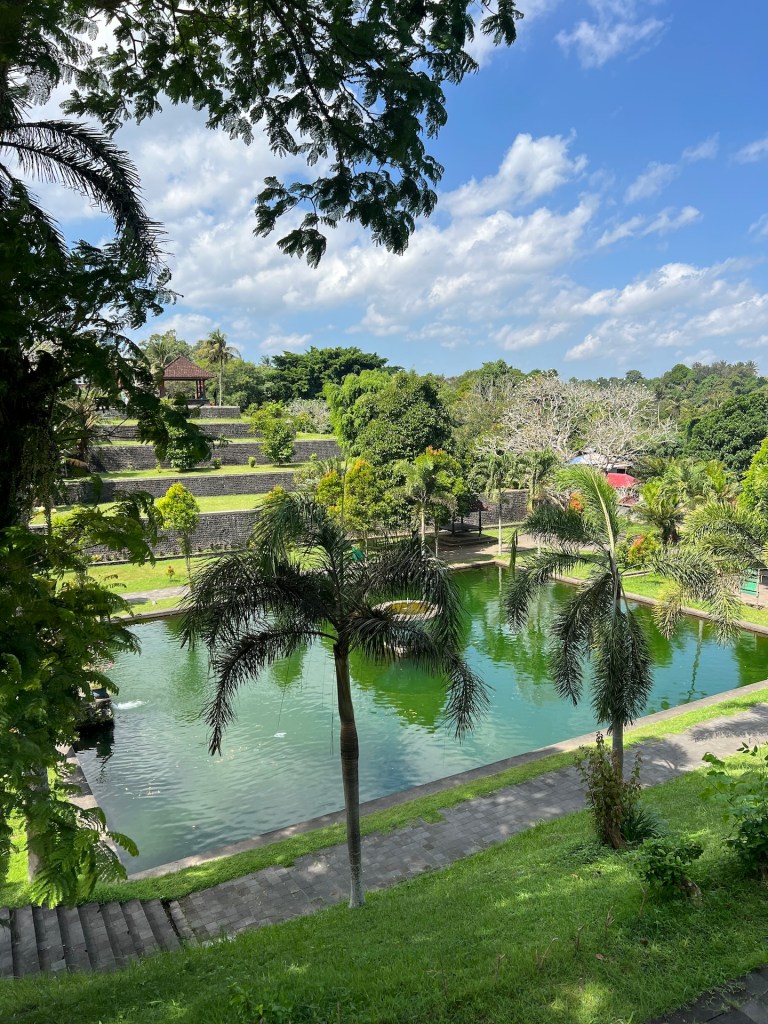 Die Sehenswürdigkeit unseres Begehrens, zeigt ein ganz anderes Bild. Der Narmada Park ist vereinsamt. Wir können die Grillen zirpen hören, so wenig ist hier los. Wir zahlen Parkgebühren (0,17EUR) und Eintritt (5,75EUR). Die Anlage ist zum Teil gepflegt und lädt zum Entspannen ein. Der Park wurde 1727 durch den König von Mataram errichtet. Er diente zur Ruhestätte der Königsfamilie in der Trockenzeit und wurde für Zeremonien genutzt. Wir schlendern um die Teiche und beobachten die Fische. Der Park ist nett, aber gelohnt hat es sich nicht wirklich. Bevor wir zurückfahren, gönnen wir uns noch einen leckeren Apfelkuchen.