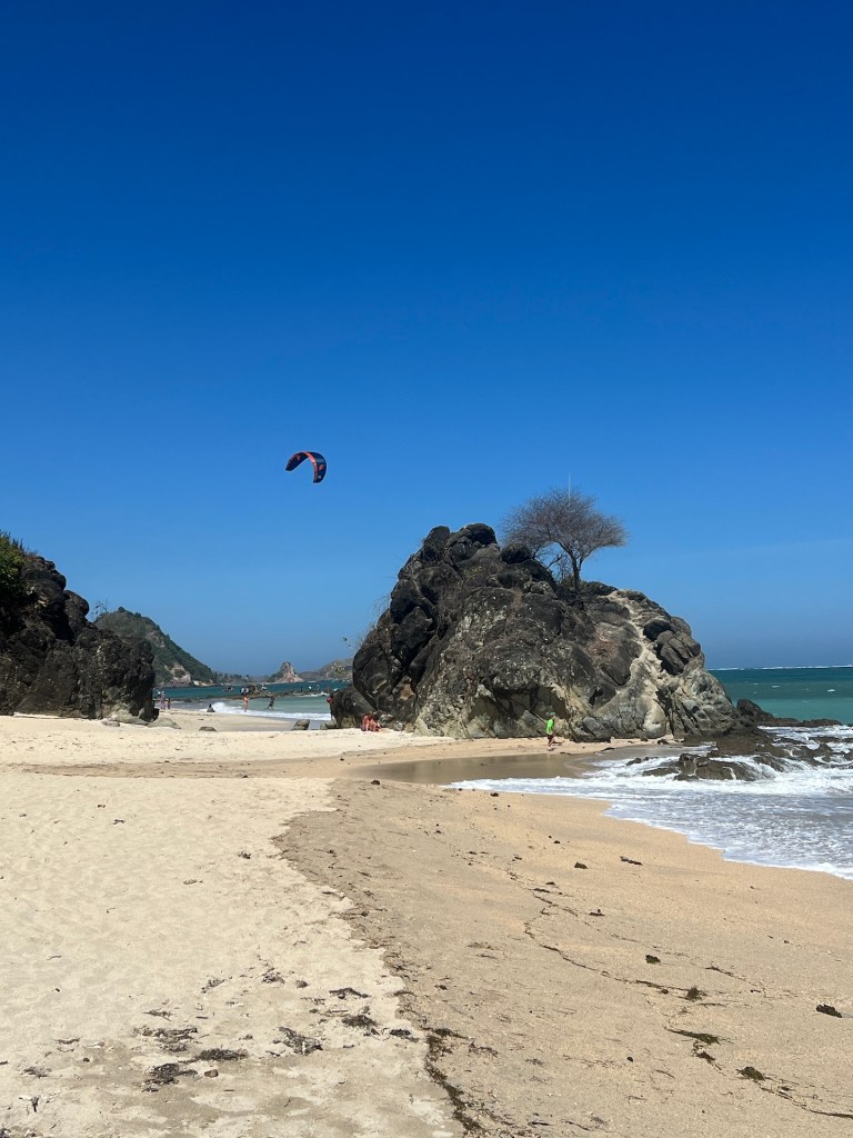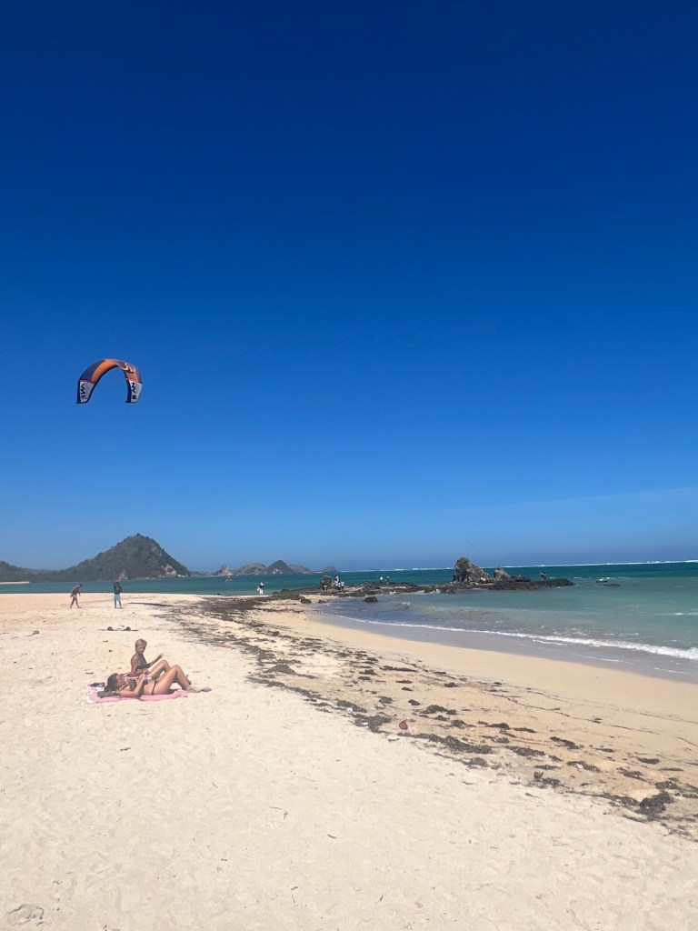 Es gibt sowohl auf Lombok, als auch auf Bali einen Ort der Kuta heißt. Beide haben schöne Strände und einladende Wellen zum Surfen. Kuta auf Lombok soll ein Backpacker-Surfer-Paradies sein und genauso wie Bali vor zwanzig Jahren. Keine Ahnung wie es auf Bali vor zwanzig Jahren war, doch der Ort ist wirklich sehr gemütlich und ursprünglich. Zwischen modernen Hotels und Cafés finden sich die Holz-Wellblech-Häuser und kleinen Stände der Einheimischen. Der Strand erstreckt sich weit bis zum Horizont. Paradiesisch. Teilweise Idyl.. Idyl… Nee, irgendwie nicht. Von allen Seiten kommen VerkäuferInnen mit allerlei Krams auf uns zu. Zwei Schritte und der nächste steuert bereits in unsere Richtung.