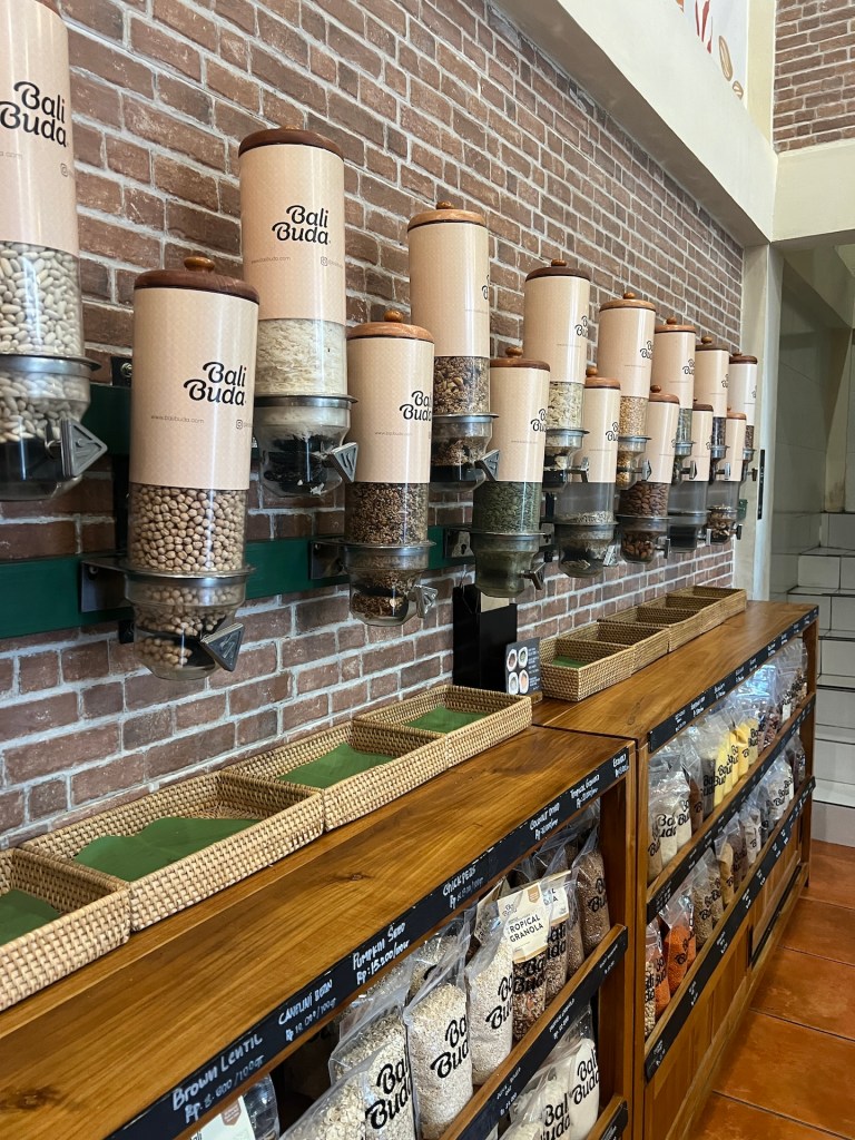 Jana quält sich mit Kopfweh und ihre Nase läuft. Wir sind es gewohnt, dass wir immer wieder Krank sind, ohne krank zu sein. Keine Ahnung woher, keine Ahnung was. Wie soll man das behandeln? Wir haben uns entschieden, dass wir das „Mürgeln“ (Wie wir es nennen) mit Ruhe und gesundem Essen bekämpfen. Wir schlendern zum Bali Buda, einem vegetarischen Restaurant, dass sich auch auf Nachhaltigkeit und unverpacktes 😍 spezialisiert hat. Dieses Konzept kann in Ubud funktionieren, da hier viele „Veggies“ zum Meditieren und Yogieren einkehren. Wir werden mit einem angenehmen Duft und künstlichem Vogelgezwitscher begrüßt. Auch das Essen ist lecker. Danach gehts ins Bett. Schlafen, ist die dritte Medizin. Wasser die vierte.