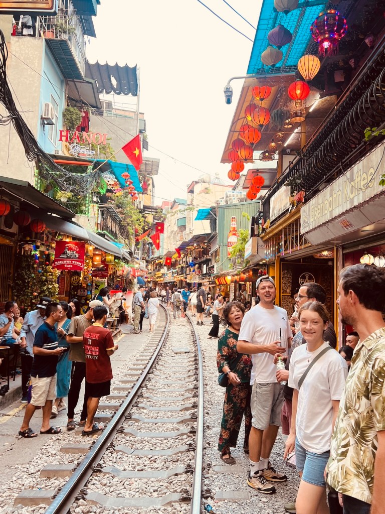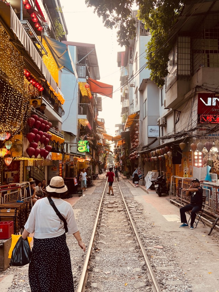 Ab zur Trainstreet! Wollen wir mal sehen wann der nächste Zug kommt. Wir haben Glück! Kaum haben wir sie Bahngleise betreten als die Trillerpfeifen der Wärter ertönen. Es wird hektisch. Soweit wir gucken können werden die Touristen vom Gleis in die Cafés links und rechts gepfercht. Muss man mal dabei gewesen sein. Wir werden vom Personal begrüßt und schnell im Obergeschoss geparkt. Dann rauscht auch schon der Personenzug an uns vorbei. Von unserem Balkon haben wir beste Sicht und man kann den Zug quasi berühren. Eine skurrile Erfahrung. Nachdem wir unsere Drinks getrunken haben lassen wir uns noch ganz entspannt über das Bahngleis treiben. Der nächste Zug? Kommt erst in einer Stunde. Von der Trainstreet geht es Richtung Osten weiter ins Old Quarter.