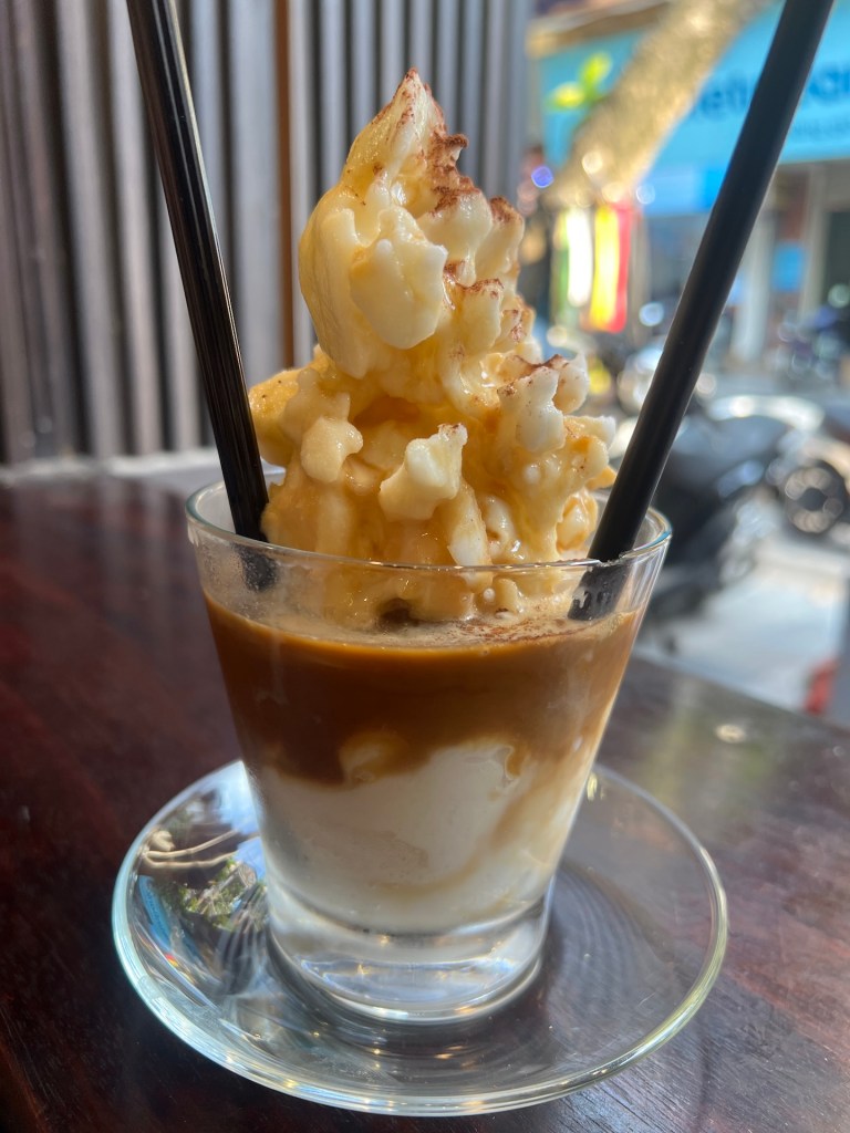 Am Freitag heißt es dann wieder einmal „Umzug“. Wir sind voller Vorfreude. Ja, der Umzug kommt etwas ungelegen, bedeutet aber auch, dass die Ankunft unser Freunde kurz bevorsteht. Wir packen also zusammen und checken so spät wie möglich aus. Es ist 12Uhr. Wir können unser sperriges Gepäck in der Lobby des Hotels stehen lassen. Ganz praktisch, da wir erst um 14 Uhr in der neuen Unterkunft einchecken dürfen. Erste Mission für heute, Bargeld abholen. In Vietnam ist Bargeld immer noch das Zahlmittel der Wahl. Wir sind es gewohnt, dass wir an jeder Ecke auf einen entsprechenden Geldautomaten treffen. Heute laufen wir um drei verschiedene Wohnblöcke ohne einen einzigen zu finden. Auch die Google-Suche ist nicht hilfreich. Am Ende kommen wir wieder am Hotel vorbei und stellen fest, dass sich auf der Ecke eine Bank mit ATM befindet. Es könnte, so einfach sein… Weiter geht es. Wir wissen schon in welchem Café wir uns heute niederlassen. In der urig eingerichteten ersten Etage des Nosan Coffee & Tea genießen wir feine vietnamesische Kaffee- und Teespezialitäten. Parallel begleiten wir Team Heimat per Messenger auf dem Weg zum Flughafen. Die Aufregung steigt spürbar. Wir vergessen die Zeit und stellen um kurz nach zwei fest, dass wir uns so langsam auf den Weg zur Unterkunft machen könnten. Wir holen unsere Rucksäcke ab und bedanken uns noch einmal recht herzlich für alles, dann treten wir den elf minütigen Spaziergang zur Ferienwohnung an.