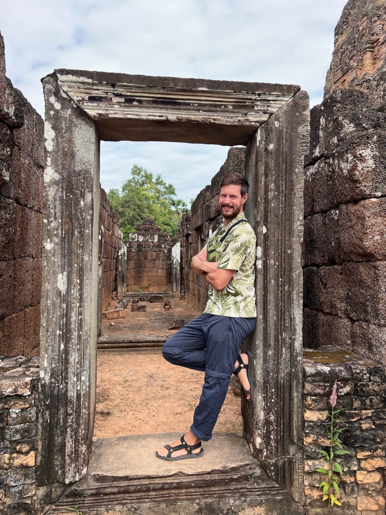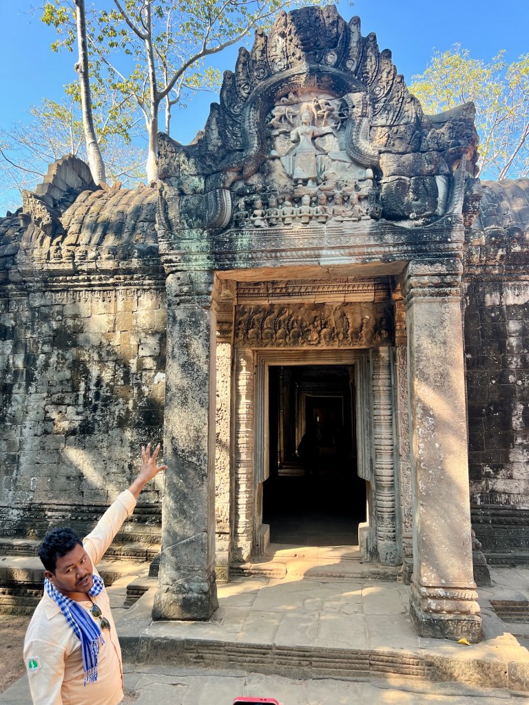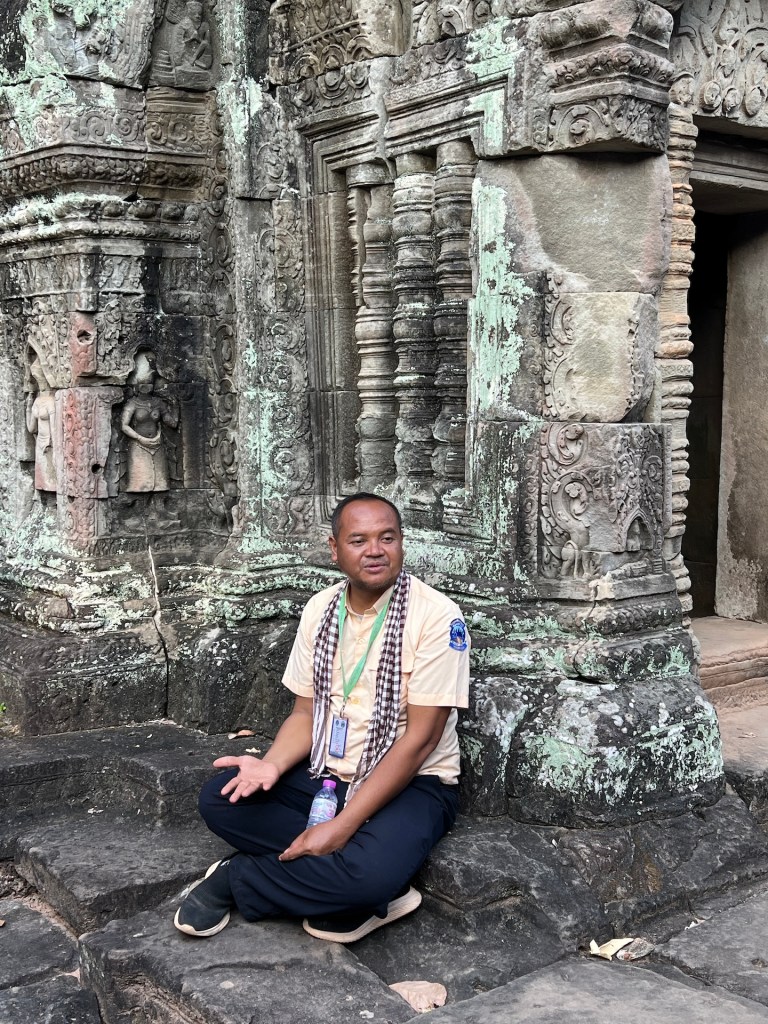 Man soll das neue Jahr doch beginnen wie das alte aufgehört hat, richtig? Also machen wir uns rechtzeitig auf zu unserem Treffpunkt, gleicher Ort, ganz andere Zeit. Um 10 Uhr werden wir von einem Rikscha Fahrer eingesammelt. Das klappt schon mal wunderbar. Allerdings haben wir im Anschluss das Gefühl, dass wir mit unserem Fahrer auf einer Schnitzeljagd sind. Immer wieder scheint er mit dem Telefon den „aktuellen“ Standort des Busses abzufragen. Wir ändern hin und wieder die Richtung bis wir nach etwa 20 Minuten den Bus finden. Mr. Teah heißt heute Sam. Sam ist seit 17 Jahren Tourenguide. Nach seinem Abschluss in Geschichte war das sein Traumjob, so sagt er. Und tatsächlich, an jedem Tempel legt er sich ins Zeug und lässt uns Teil der Geschichte werden. Seine Erzählungen sind dabei interessant und spannend. Am Ende des Tages haben wir sechs Tempel besichtigt: