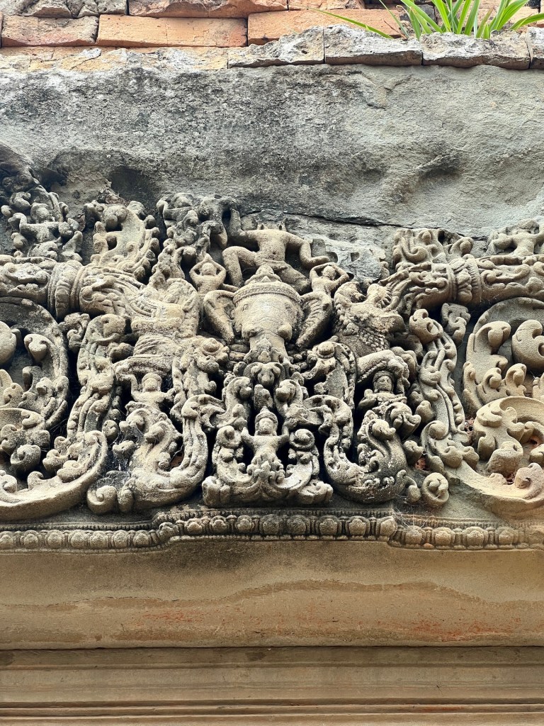Der Östliche Mebon ist ein Inseltempel der ebenfalls in der Mitte des 10.Jahrhunderts errichtet wurde. Der See der den Tempel früher umgab ist heute ausgetrocknet. Aufgrund seiner Lage in der Nähe eines Flusses war es möglich acht Elefantenstatuen, geschlagen aus je einem Stein, auf den Ecken zweier Ebenen zu platzieren. Diese 2m hohen Statuen hierher zu bekommen war eine logistische Meisterleistung.