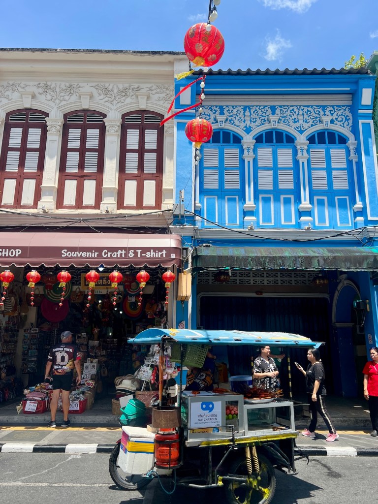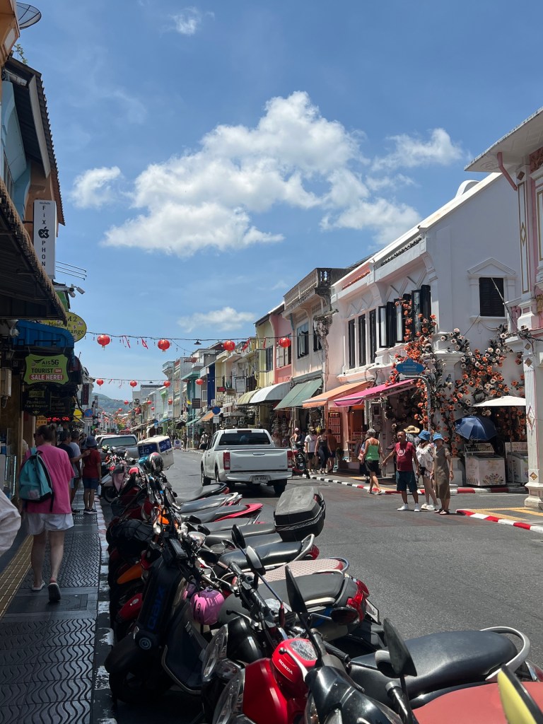 Am nächsten Tag packt uns dann doch die Abenteuerlust. Nach dem Frühstück schnappen wir uns ein Taxi und fahren in die Oldtown von Phuket. Viel haben wir bisher noch nicht gesehen, doch wir wissen, dass Phuket nicht unsere Lieblingsinsel wird. Vielleicht kann die Oldtown uns umstimmen. Das lebhafte Altstadtviertel mit seinen bunten Häusern im portugiesischem Stil ist mittlerweile fast 100 Jahre alt. Ein idealer Ort für Shopping-begeisterte. Unsere Mädels leiden, wie wir damals vor einem Jahr, an dem harten Wechsel von kalt auf hieß. Wir machen daher langsam. Die Thalang Road gehen wir zweimal ab, dann haben wir alles gesehen und suchen nach einer Abkühlung. Wir finden ein veganes Restaurant mit interessantem Background. Die Lebensmittel erhalten sie von ihrer eigenem Farm, auf der sie ehemalige Sträflinge beschäftigen und Ihnen somit die Möglichkeit geben, wieder zurück ins Leben zu finden. Unsere Gastgeberin ist zu unserer Überraschung Christin. Ihr Glaube soll ihren Schützlingen den rechten Weg zeigen. Diese Leidenschaft zeigt sich auch beim Essen. Es ist köstlich.