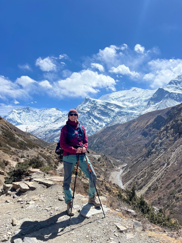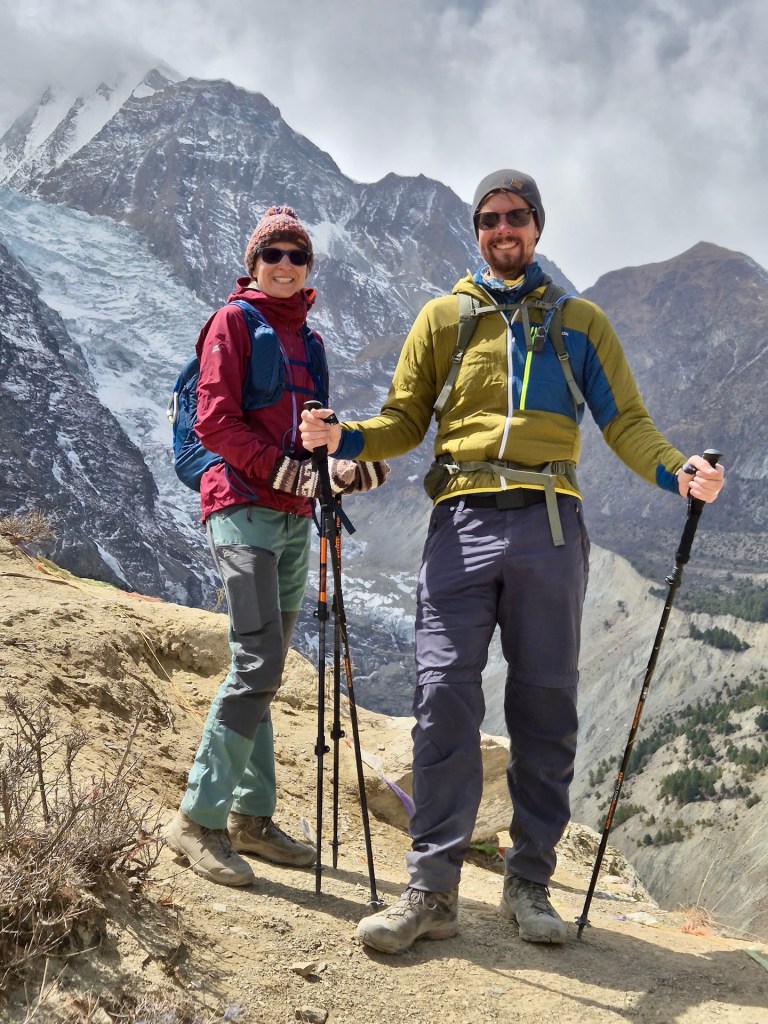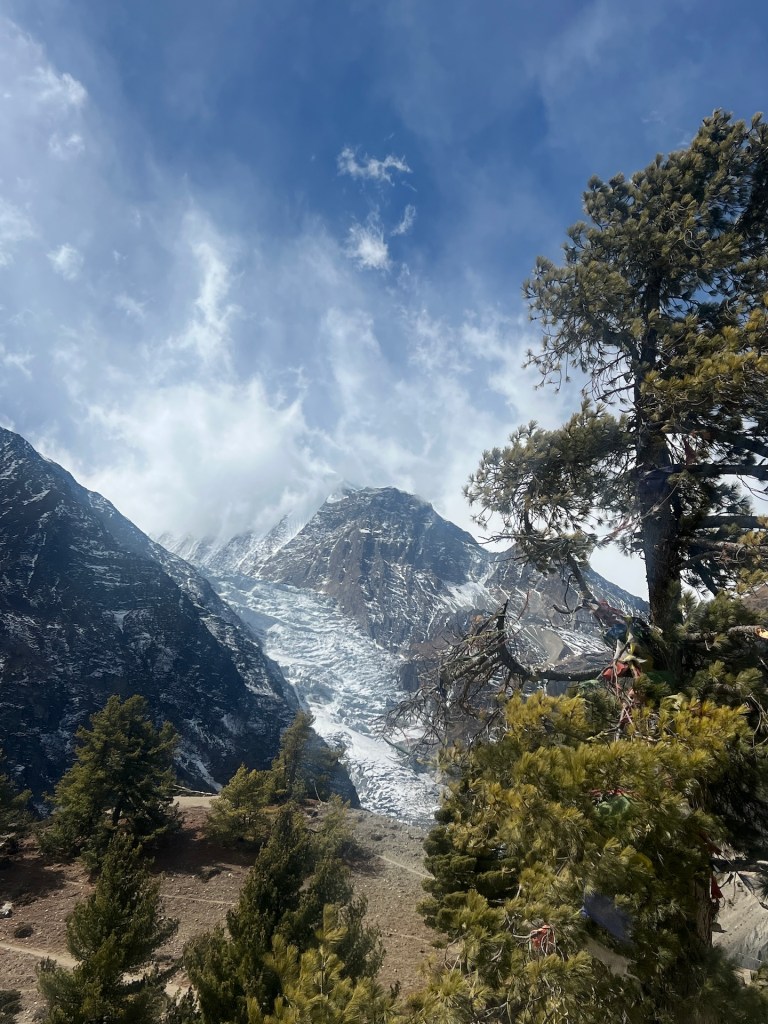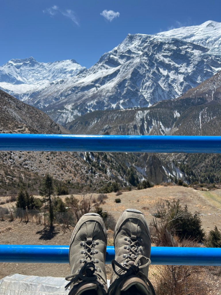Entgegen unserem Rhythmus dürfen wir heute mal eine Stunde länger schlafen. Einziger Tagesordnungspunkt: Viewpoint Manang. Auf der Wanderung nach oben begleitet uns eine grandiose Aussicht auf den Gangapurna Gletscher. Der Weg führt im Zick-Zack circa 200 hm Bergauf. Das Plateau des vorgelagerte Berges bietet eine fesselnde Aussicht ins Tal und auf den Gangapurna (7455m) und Annapurna III (7555). Sogar Lhakpa begleitet uns, diesmal ohne 25 kg auf dem Rücken. Wir verweilen eine Weile auf dem Weg und liegen in der Sonne.