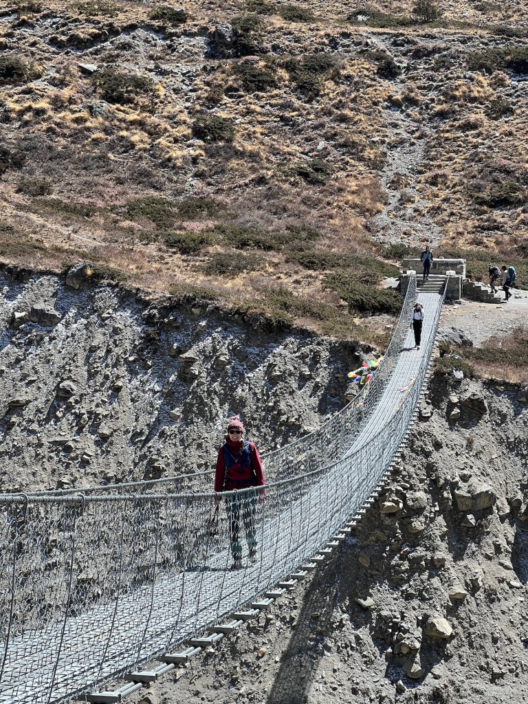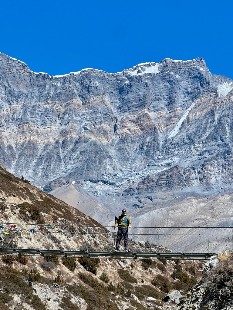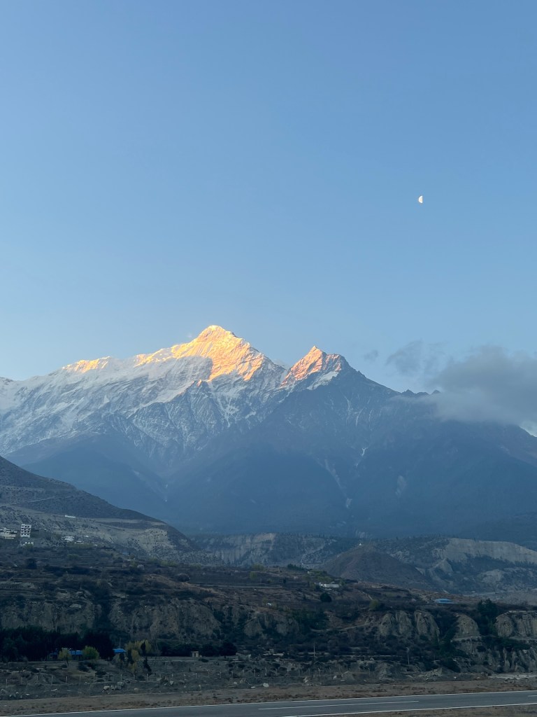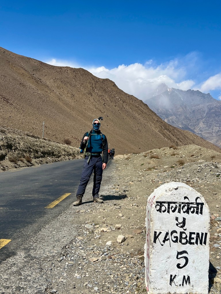 Heute haben wir den 21.03.2025, es sind kuschlige -11Grad draußen und wir wandern weiter ab. Wir wanden circa 20 Kilometer von Muktinath (3800m) über Kagbeni (2850m) nach Jomsom (2770m). Shera wäre den Weg gern mit Bus gefahren, da wir die meiste Zeit an der Straße laufen müssen und es zwischendurch extrem windig werden wir. Doch wir wollen laufen. Allen geht es gut, wir sind fit und niemand hat Kopf- oder Muskelschmerzen. Einzig unser Porter Lhakpa genehmigt sich eine Fahrt mit dem Bus. Das hat er verdient.