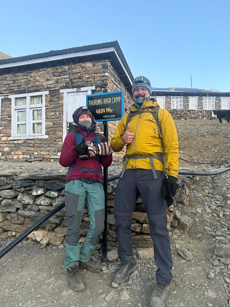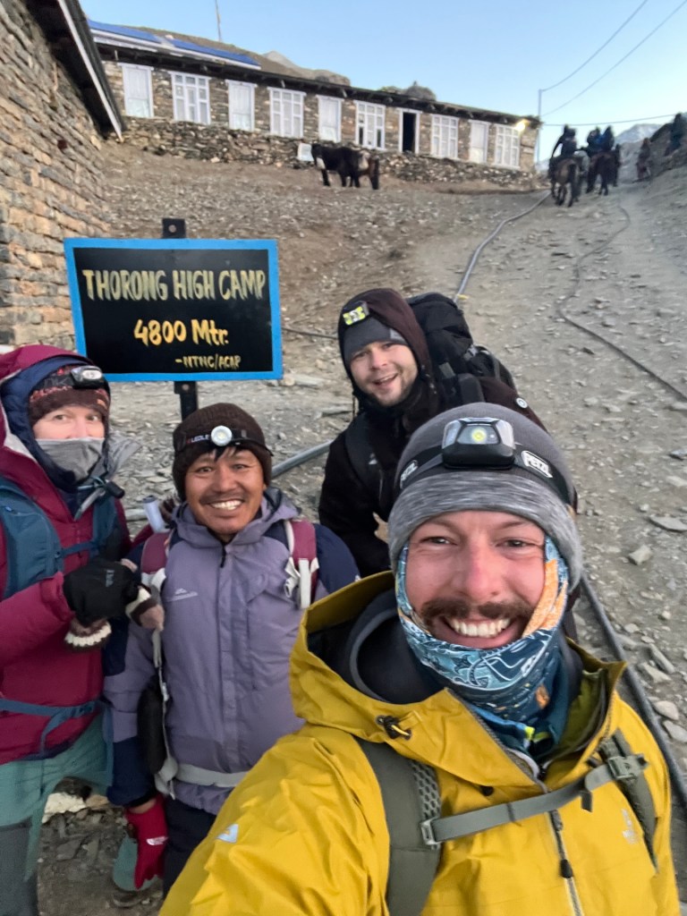 Die Hütte ist etwas abgelegen von allen anderen, so dass wir bis auf einer weiteren Person die einzigen Gäste hier sind. Zu uns gesellt sich Tommy aus Kiel. Er ist allein unterwegs ohne Guide, ohne Crampons, ohne Wanderstöcker. Ein Teil des Gemeinschaftsraumes ist verglast, was bei diesem sonnigen Wetter dafür sorgt, dass dieser Teil schön warm ist. Das erste Mal seit Tagen, dass wir uns auch tagsüber aufwärmen können. Wir verbringen den Abend mit dem Spiel 31 und mit unserem Vorbereitungsgespräch. Morgen ist der Tag der Tage! Morgen geht es circa 880 hm bergauf. Zum 5416m hohen Thorong La. Wir werden insgesamt 15km wandern und bei -20Grad starten. Die Aufregung steigt und vereint sich mit dem Gefühl der Vorfreude. Keiner von uns war je aus eigener Kraft so hoch gewandert. Wir fühlen uns wie Abenteurer auf einer Expedition in unbestimmtes Territorium. Gegen acht Uhr gehen wir ins Bett. Heute nehmen wir alle eine Paracetamol zum Schlafen, um der Höhenkrankheit vorzubeugen. Morgen klingelt der Wecker um 3:30Uhr.