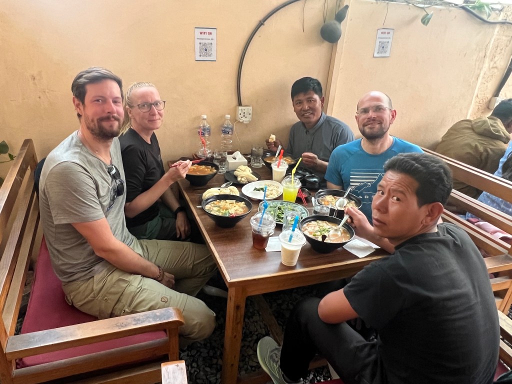 In Pokhara angekommen, checken wir im Hotel ein. Ein richtiges echtes Hotelzimmer. Luxus pur und wir sind wieder allein hier. Bevor Shera nach Haus fährt, möchte er mit der ganzen Truppe noch tibetisch Essen gehen. Zurück sind wir gerollt. Es war so viel Essen. Mo:Mo, Pakchoi, Tigmo und Thenthuk, so lecker. Wir spazieren noch am See entlang und besprechen, dass wir uns in Kathmandu wieder treffen werden.